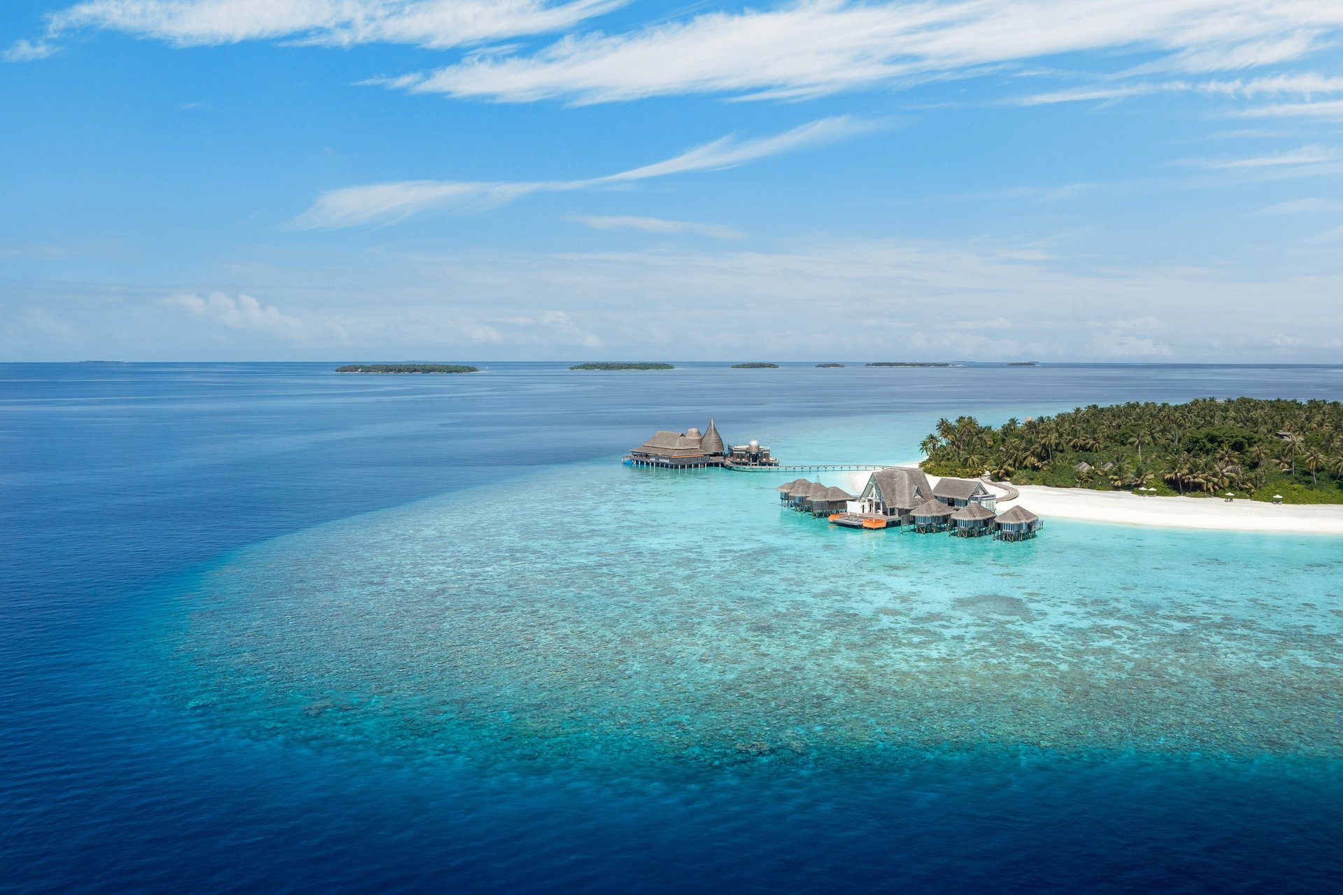 • Location: West-facing overwater setting, offering uninterrupted views of the Indian Ocean’s fiery sunsets
