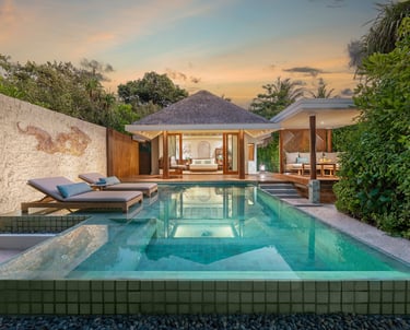 • Experiences: Floating breakfasts, beachfront cinema, in-villa spa rituals