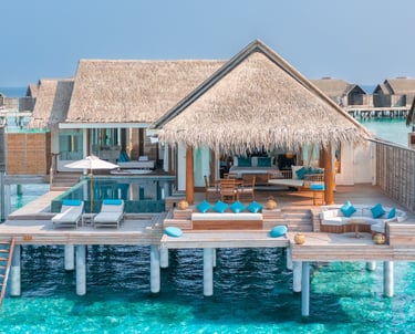 • Location: Suspended above the tranquil lagoon, offering uninterrupted ocean views and direct reef access