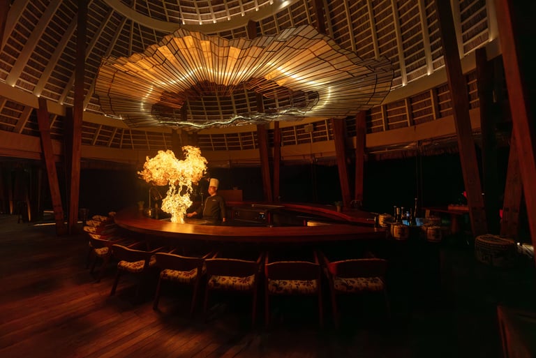 Suspended above the shimmering lagoon, FIRE is a theatrical celebration of Japanese teppanyaki and Peruvian flair. Recently reimagined with a bold new aesthetic, this overwater venue invites guests into a world of sizzling artistry and sensory indulgence.