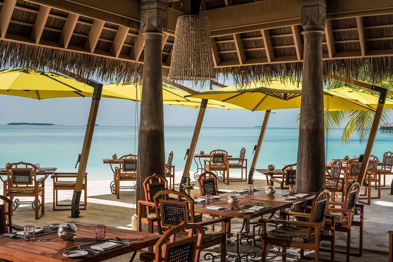 Nestled beside the beach with sweeping views of the Indian Ocean, Plates is Anantara Kihavah’s main restaurant—an open-air haven where every meal feels like a celebration.