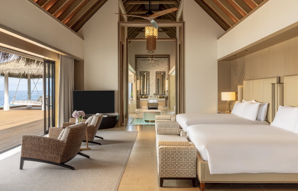 The island accommodates 24 guests (18 Adults & 6 children) across two elegantly designed villas and one four-bedroom residence.
