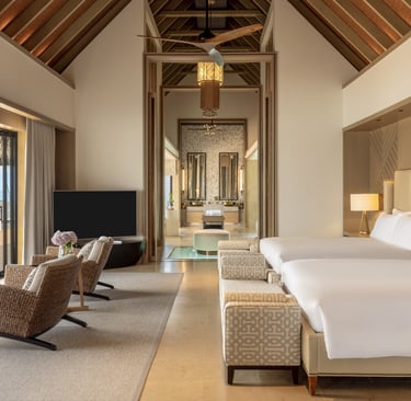 Set across 32,000 square meters of pristine paradise, Ithaafushi is the largest private island in the Maldives, designed for those who seek the rarest kind of escape. Accessible only by a 40-minute private yacht or a 15-minute scenic seaplane from Malé, this sanctuary offers complete seclusion with the signature elegance of Waldorf Astoria.