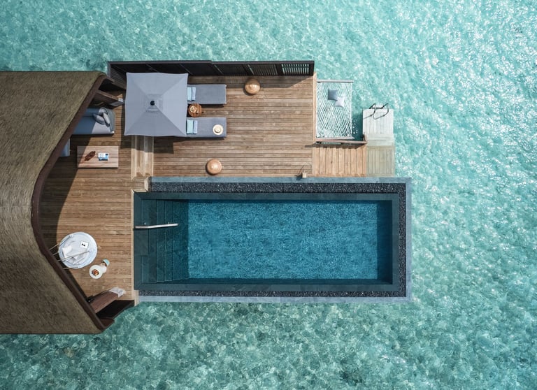 • Private infinity pool: 33 sqm — suspended above the lagoon, ideal for golden hour swims and starlit dips