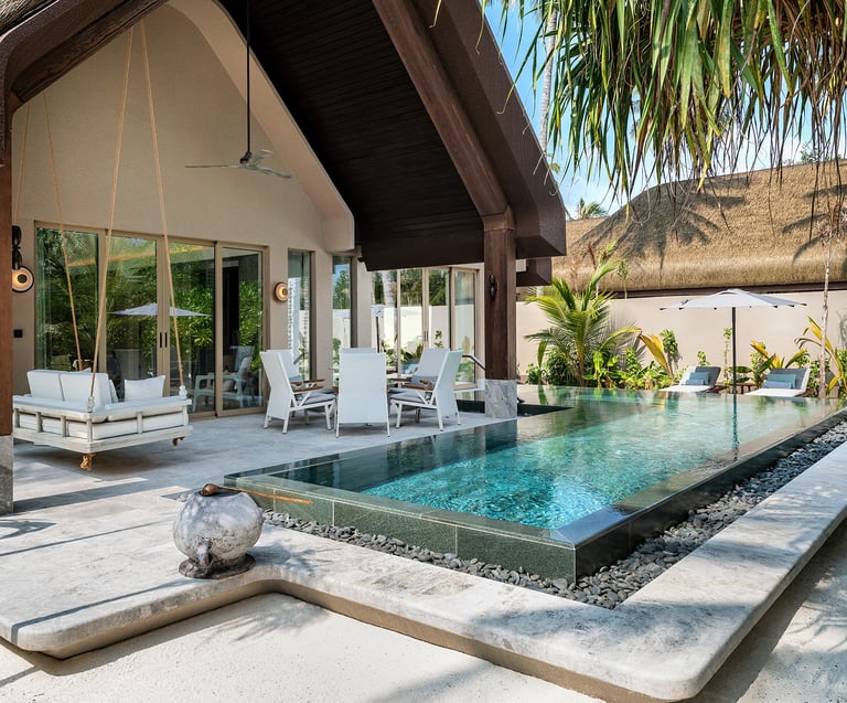 • Private infinity pool: Approx. 60–85 sqm — surrounded by tropical gardens and steps from the beach