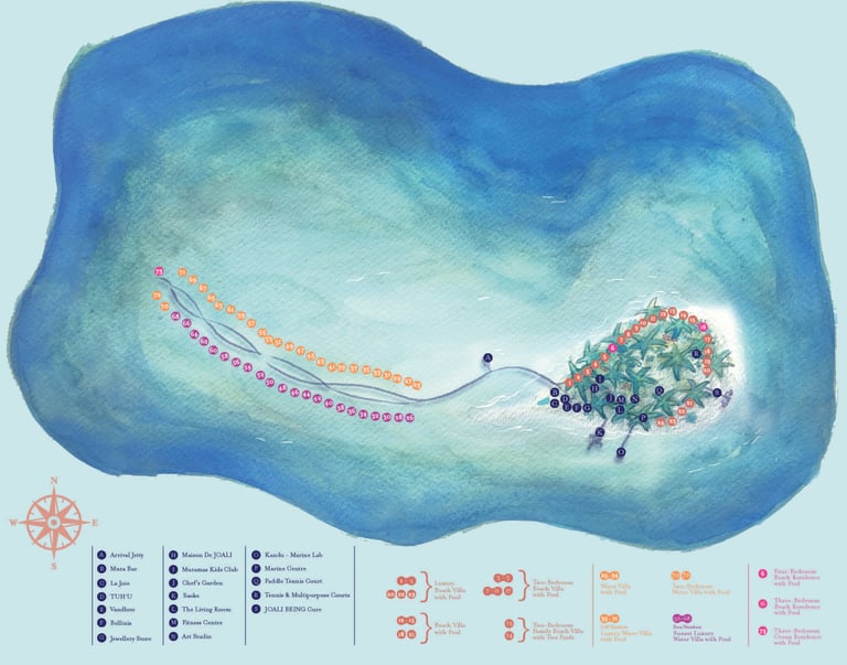 From curated artworks to architectural storytelling, every corner of the resort celebrates the joy of living. Whether you're savoring global flavors at one of five exquisite restaurants, rejuvenating at the JOALI Spa by ESPA, or exploring the vibrant marine life of the house reef, each experience is crafted to inspire and uplift.