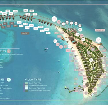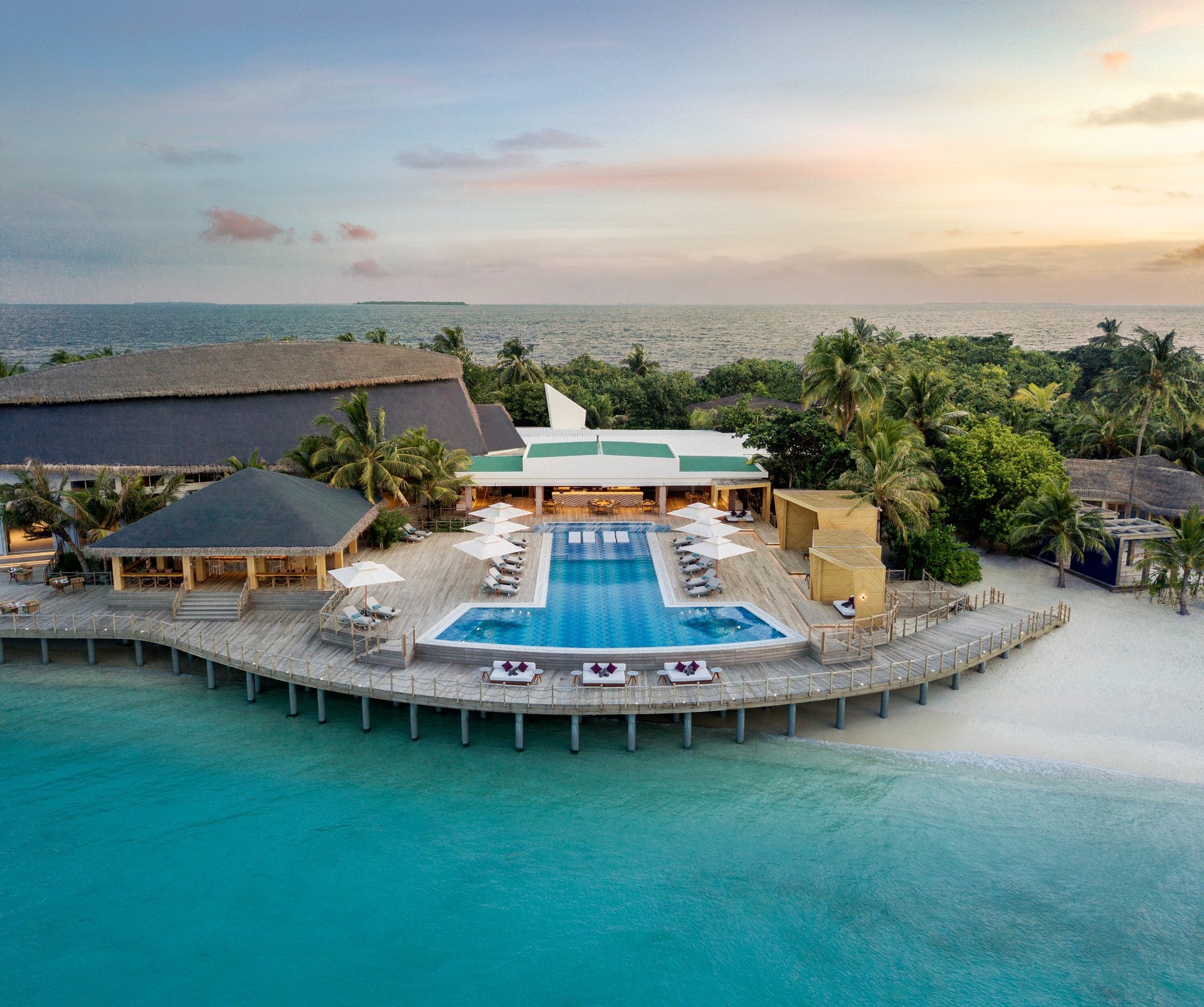 The resort features 60 elegantly designed villas, including Beach Pool Villas, Overwater Pool Villas, and Duplex Residences, each offering private pools, spacious wooden decks, and panoramic views of the Indian Ocean. Whether sunrise or sunset-facing, every villa is a sanctuary of privacy, comfort, and contemporary sophistication.