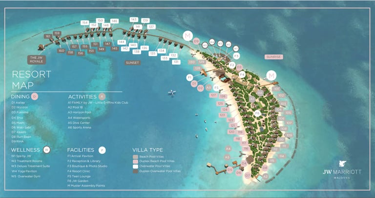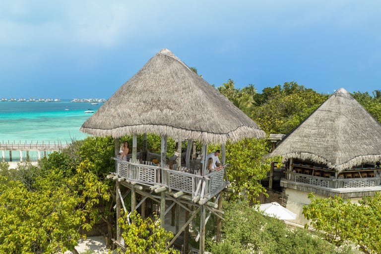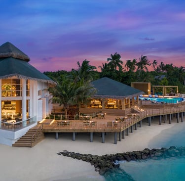 • Décor: Contemporary and airy, inspired by Maldivian textures and tones — thatched roofs echo traditional Dhoni boats