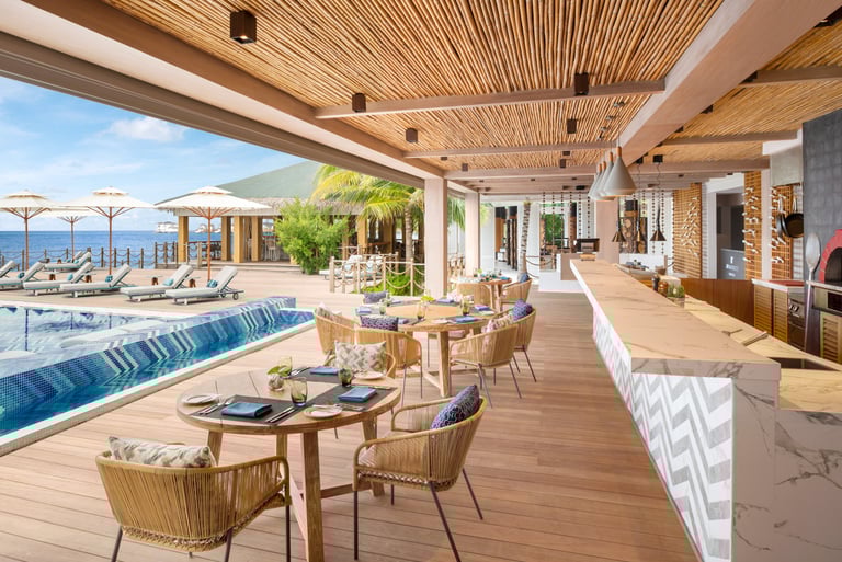 Nestled beside the shimmering horizon pool, Fiamma is JW Marriott Maldives’ breezy Italian escape — a place where wood-fired aromas, handmade pastas, and sun-drenched flavors come together in a relaxed, open-air setting. Whether you're lounging between swims or gathering for a casual lunch, Fiamma offers a comforting slice of Italy with panoramic views of the Indian Ocean.