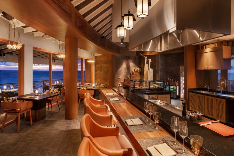 Suspended over the shimmering waters of the Indian Ocean, Wabi Sabi is a serene cocktail lounge inspired by the Japanese philosophy of finding beauty in imperfection and simplicity. It’s a place where handcrafted cocktails, rare spirits, and quiet sophistication come together in a dance of flavor and mindfulness.