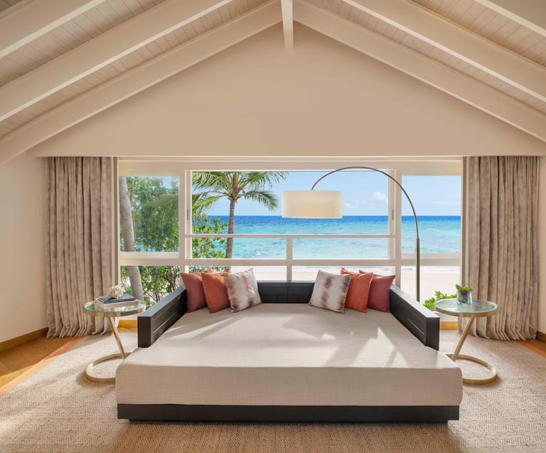• Configuration: One-bedroom villa with king bed, plus an upper-level lounge offering panoramic ocean views