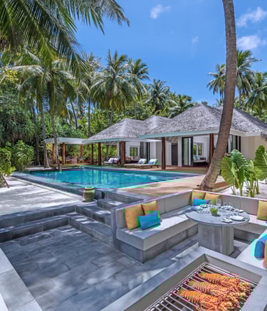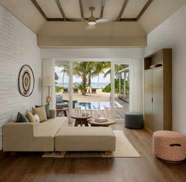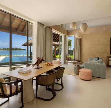 With 85 spacious villas—beachfront, family, and overwater—each residence blends tropical charm with sophisticated comfort. Whether you're waking to sunrise over the lagoon or watching the sunset from your private pool, every moment is curated for connection, serenity, and wonder.