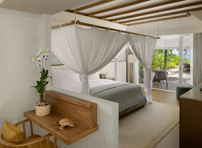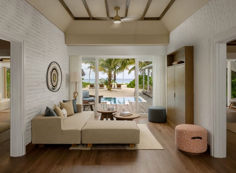 • Experiences: Sunrise strolls, barefoot beach dinners, and in-villa wellness rituals