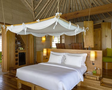 • Location: Positioned above the shallow lagoon, offering tranquil views and proximity to the main island