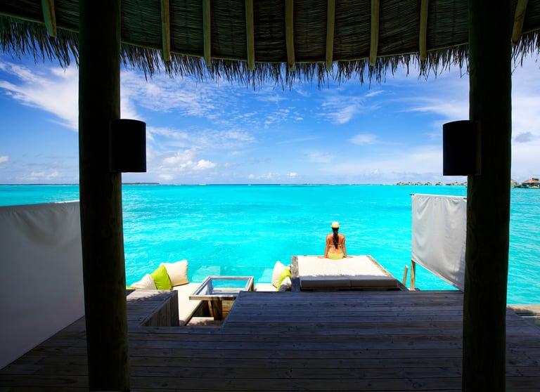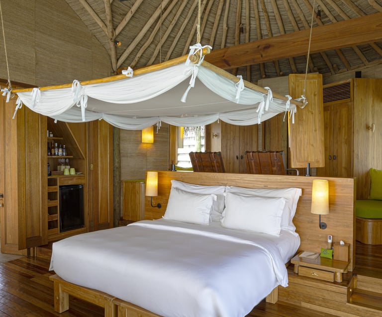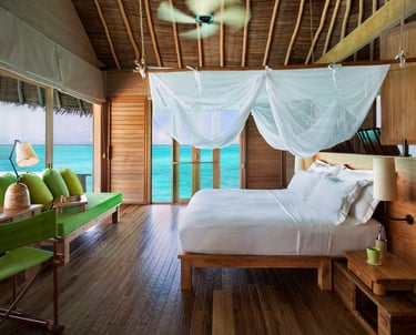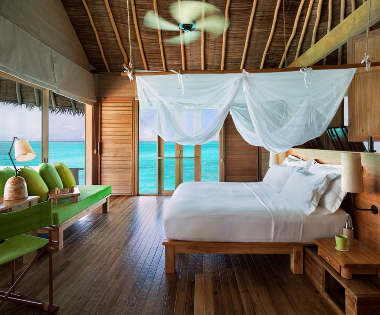 • Overwater netted hammock: Ideal for lounging above turquoise shallows