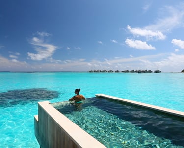 • Sunken glass bathtub: Overwater, offering cinematic ocean vistas