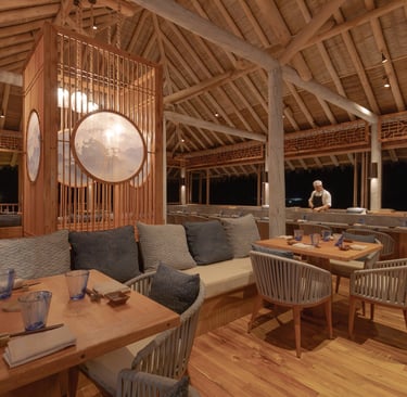 Zen is Six Senses Laamu’s intimate Japanese fusion restaurant, perched on the upper deck with panoramic views of the Indian Ocean. The ambiance is laid-back yet refined, with the sound of waves providing a natural soundtrack to your culinary journey.
