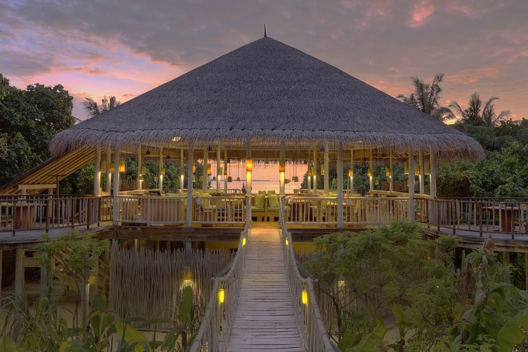 Chill Bar is the soul of Six Senses Laamu’s social scene—an overwater lounge built across multiple levels, just steps from the house reef. It’s where morning snorkel stories turn into afternoon spritzes, and sunset DJ sessions blend seamlessly into starlit conversations.