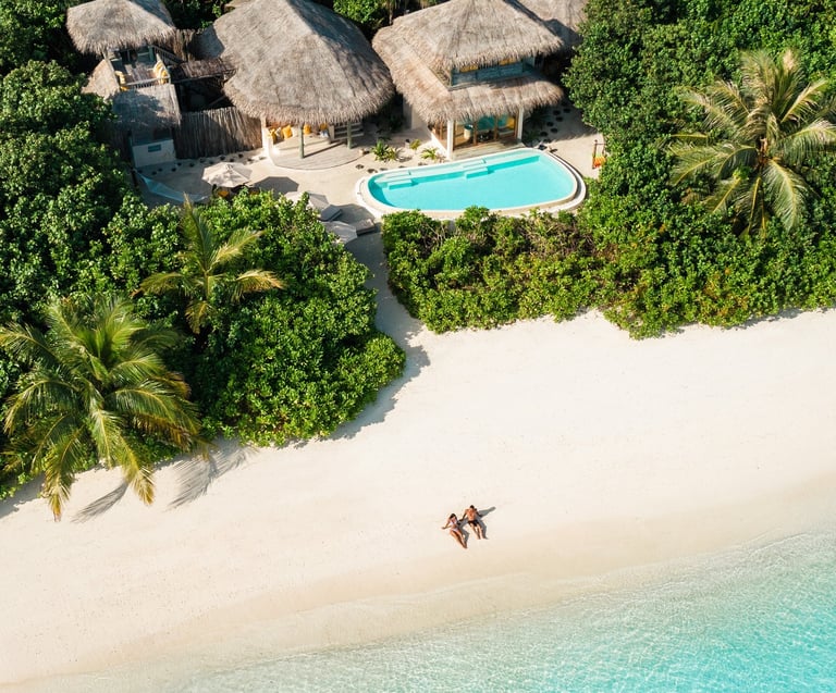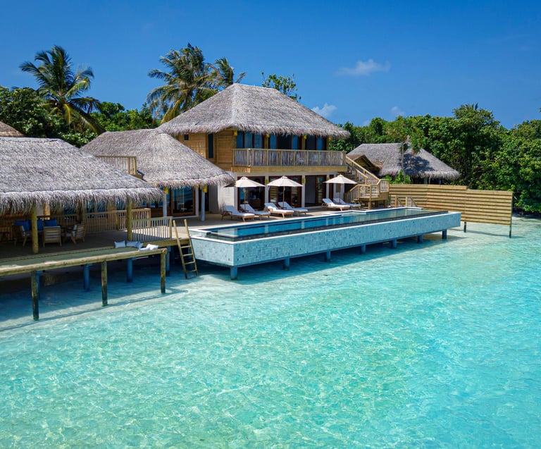 Tucked away in the remote Laamu Atoll, Six Senses Laamu is the Maldives’ only five-star resort in this untouched region—a scenic seaplane and speedboat journey from Malé, yet worlds apart in atmosphere. Surrounded by crystal-clear waters, pristine white sands, and lush tropical vegetation, the resort offers a rare blend of eco-conscious design, intuitive service, and immersive experiences.