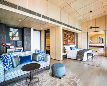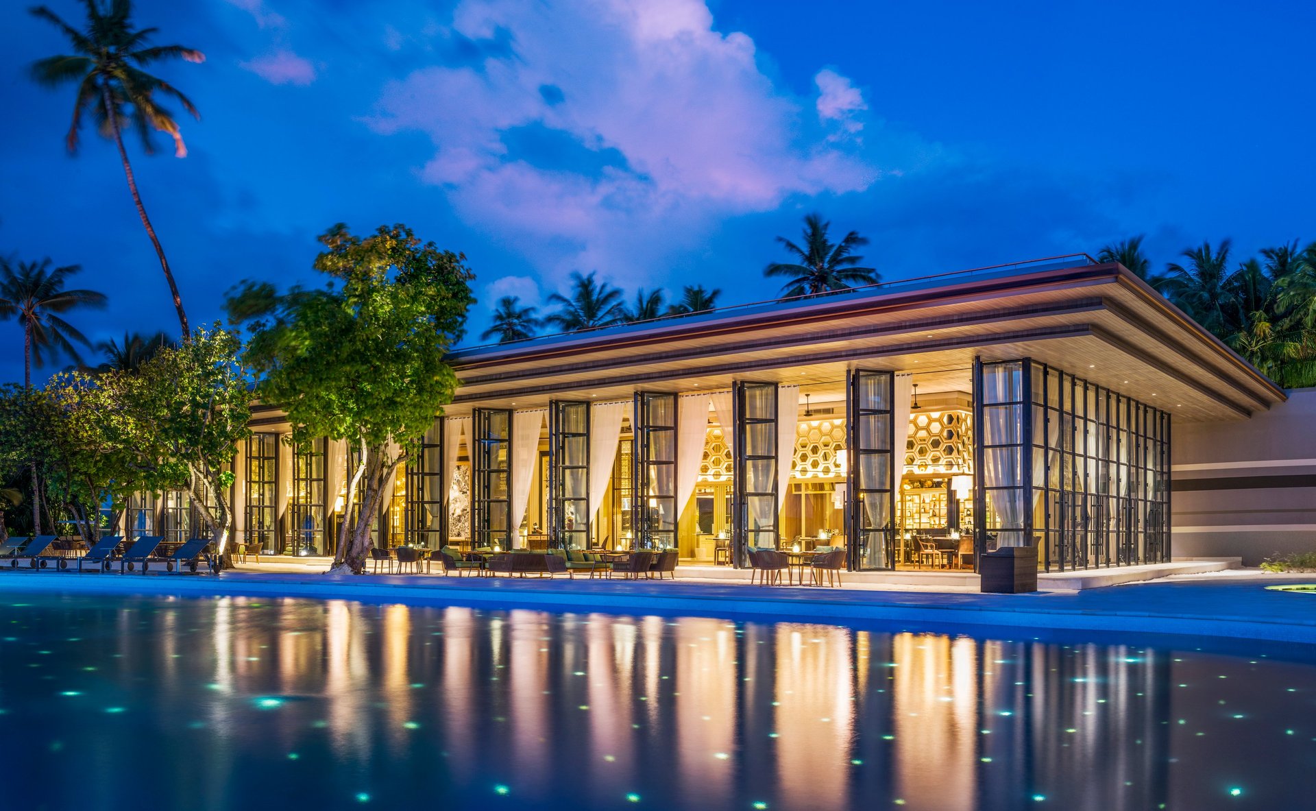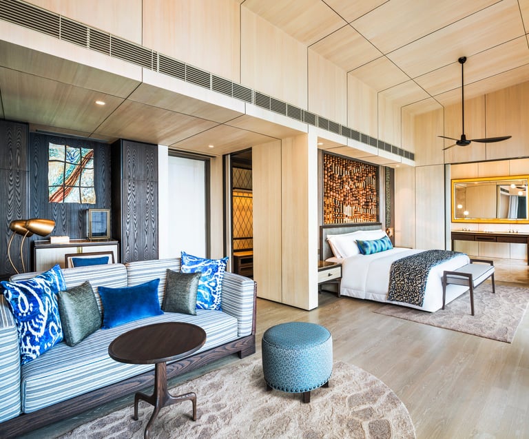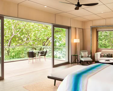 • Elegant décor blending Maldivian textures with modern design