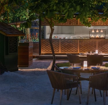 Hidden at the edge of Vommuli’s white-sand beach, T•Pan is a sanctuary of Japanese Kaiseki-style dining, where every dish is a meditation on flavor, form, and philosophy. Inspired by the wabi-sabi aesthetic—the beauty of imperfection and simplicity—this intimate restaurant invites guests into a world of refined minimalism and sensory discovery.