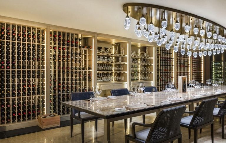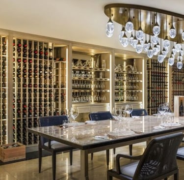 Hidden beneath the tropical gardens of Vommuli Island lies Decanter, a private underground wine cellar where culinary artistry meets oenological mastery. This intimate venue hosts a five-course degustation experience, meticulously paired with rare vintages from a collection of over 2,000 bottles, representing 615 labels from 23 countries.