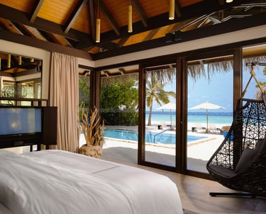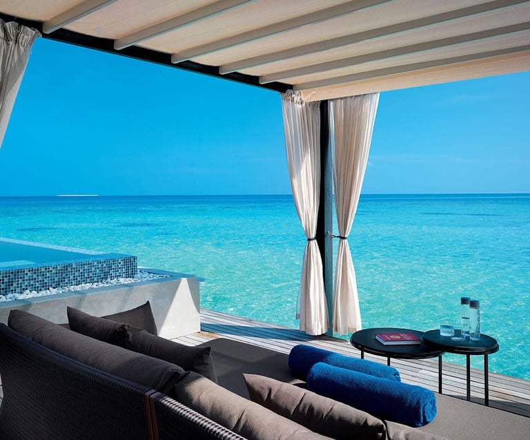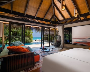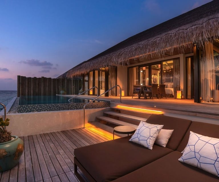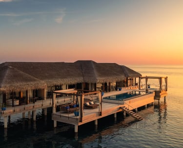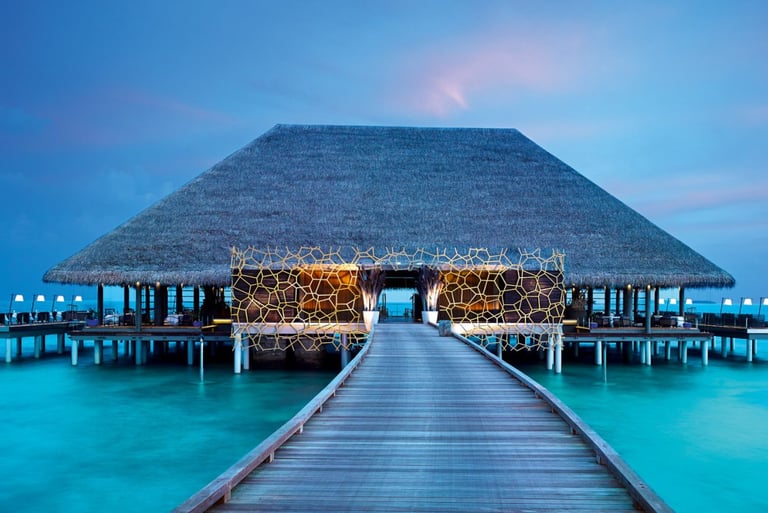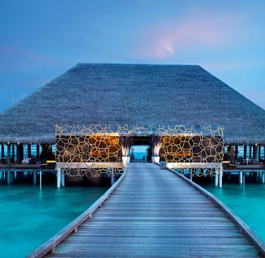 Nestled over the turquoise lagoon in six secluded double treatment rooms. Surrounded by water and sky, creating a floating haven of calm. Includes a salon and the first snow room in the Maldives, offering contrast therapy in tropical paradise. Personalized service in a setting of absolute privacy. Integration of nature, luxury, and healing arts, Ideal for wellness seekers, honeymooners, and guests on transformative journeys