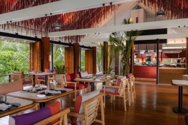 Global à la carte menu with homestyle favorites and international flair. Signature wood-fired pizzas served fresh throughout the day. Buffet breakfast featuring tropical fruits and cooked options for every mood